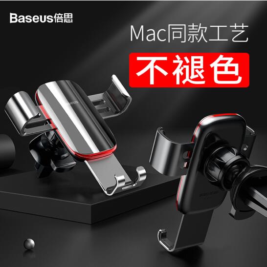 倍思 车载手机支架汽车导航支架车用出风口多功能万能通用款重力支驾汽车用品 MAC合金材质升级款-自动锁紧【亮黑色】